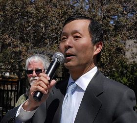 ![]() 中国人权网主席柯雷克(Michael Craig)在集会上发言。 |
