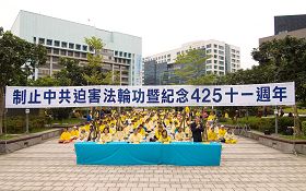 对中国人来讲,「四.二五」是一个特殊的日子。十一年前的这一天,大陆一万多名法轮功学员为了得到一个合理的炼功环境而到北京中央信访办和平申诉。但在中共的恶意扭曲下,万人的和平上访被诬蔑为「包围中南海」事件。今天在台湾举办的活动,就是要纪念法轮功学员在四.二五这个日子,无惧无私的上访义举。