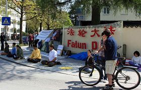 ![]() 德国法轮功在慕尼黑中领馆前纪念“四•二五”并和平抗议 |