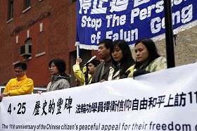 ![]() 芝加哥地区法轮功学员中领馆前纪念四•二五,谴责中共迫害 |