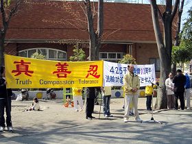 日本法轮大法学会代表鹤园雅章首先表示,纪念“四二五”这个非同寻常的日子,中共对法轮功异常残酷的迫害还在继续,对美国国会以压倒多数通过要求中共立即停止对法轮功学员迫害的605号决议案感到欣慰,也希望日本政府能做出同样的正义之举。