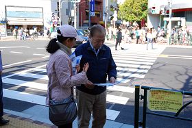 法轮功学员向路人讲真相
