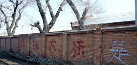 经历十年风雨的大法真相标语讲真相小记经历十年风雨的大法真相标语文/大陆大法弟子 启慧此图片所拍摄的“法轮大法是正法”七个字是写在大陆黑龙江省某市市郊的一个工厂的后墙上。