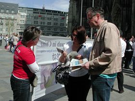 德国法轮功学员科隆大教堂前讲真相(图)