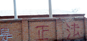 二、这则“法轮大法是正法”标语是2000年写上去的。十年过去了,十年的风吹雨淋,十年的酷暑严寒,这几个字至今仍然象刚写上去的一样鲜明、亮丽;图片上的“是”字是当时写的比较浅,后来,大法弟子半夜里又用其它颜色的油漆补了一遍。这难道不神奇吗?