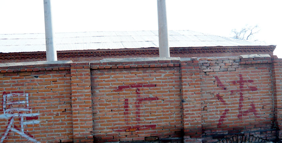 一、这幅标语是2000年初,由大法弟子写上去的。当时的年代,那是邪恶迫害最为疯狂的时期。到现在已十年过去了,在这十年中,大法弟子们前仆后继,冒着被抓、被劳教、被判刑的危险在大街小巷、街头巷尾写下了无数的“法轮大法好”、“法轮大法是正法”的标语。可是,大多被邪恶们弄掉或涂抹掉了,唯独这则大标语却没有受到任何的污染和破坏,这里是邪党控制的重点区,这几乎是不可能的,这难道不神奇吗?