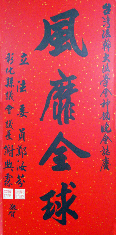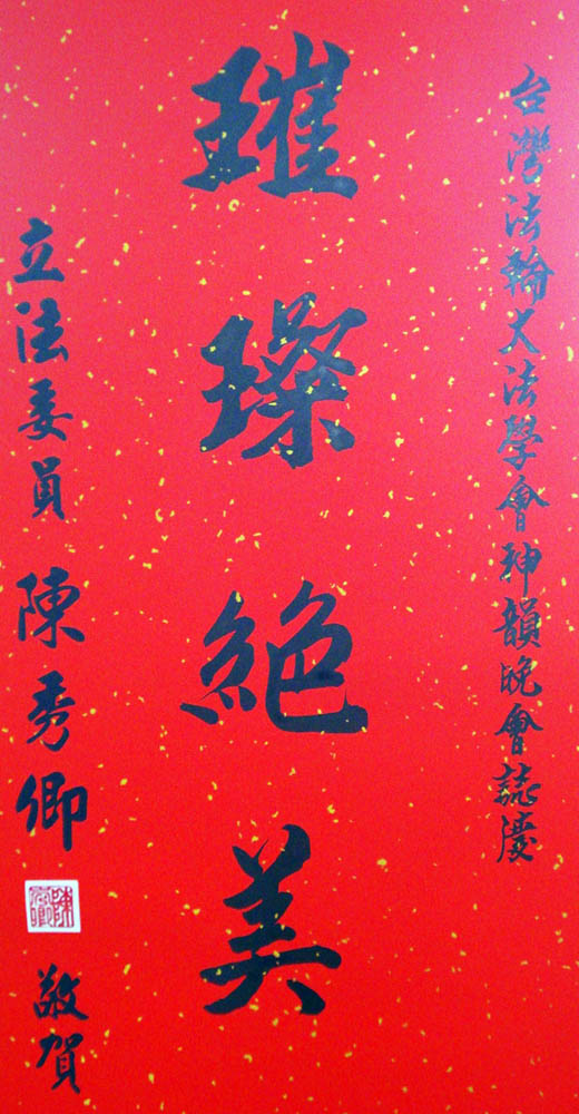 神韵艺术团连续三年在台演出创下一流口碑并引发社会各界热烈回响,彰化县长卓伯源赞誉神韵晚会“华丽传神 韵味天成”;立法委员翁金珠、陈秀卿、郑汝芬、彰化县议会议长谢典等发来贺匾;南投县长李朝卿祝贺称誉神韵艺术团“艺海生辉 艺臻化境”。