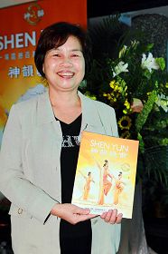 彰化市立管弦乐团行政总监张心戎再度来看神韵,她推崇神韵艺术团将中华文化表演得很传神,是华人的骄傲!她表示以前在美国读书,常常观赏外国的大型表演,可都是西方的东西。看到神韵艺术团表演的是中华传统文化,实在很难得,让她很感动,所以她每年必定来观赏。