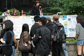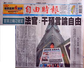 台湾法轮功学员为突破中共对法轮功资讯的封锁,经常到台北一零一大楼前对中国大陆观光客举标语告知法轮功无辜被中共迫害的真相。