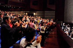 ![]() 观众被神韵艺术家们精湛的表演所吸引 |