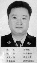 2008年7月21日,恶警彭涧秋参与绑架双鸭山市第十九中学教师付秀芬和家住融合小区的鲍思宇二位法轮功学员。付秀芬和鲍思宇中午在马鞍山发真相被一男子诬告,永红派出所副所长徐敬启带领恶警唐俊宝、徐杰、秦琼、张宏余参与迫害。7月21日当晚,付秀芬丈夫到永红派出所打听情况,被徐敬启抢走手机胁持到一台警车上,又胁持鲍思宇到另一台警车上,共两台警车七、八个人,到向阳派出所叫上片警彭涧秋,分别非法搜查了鲍思宇和付秀芬家。