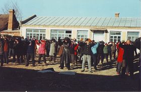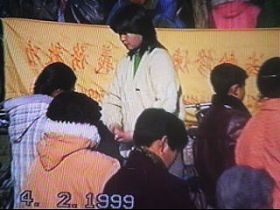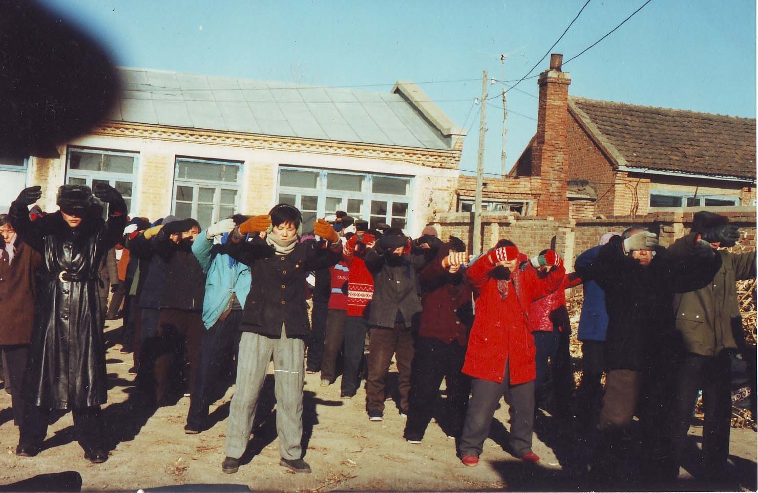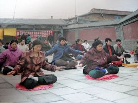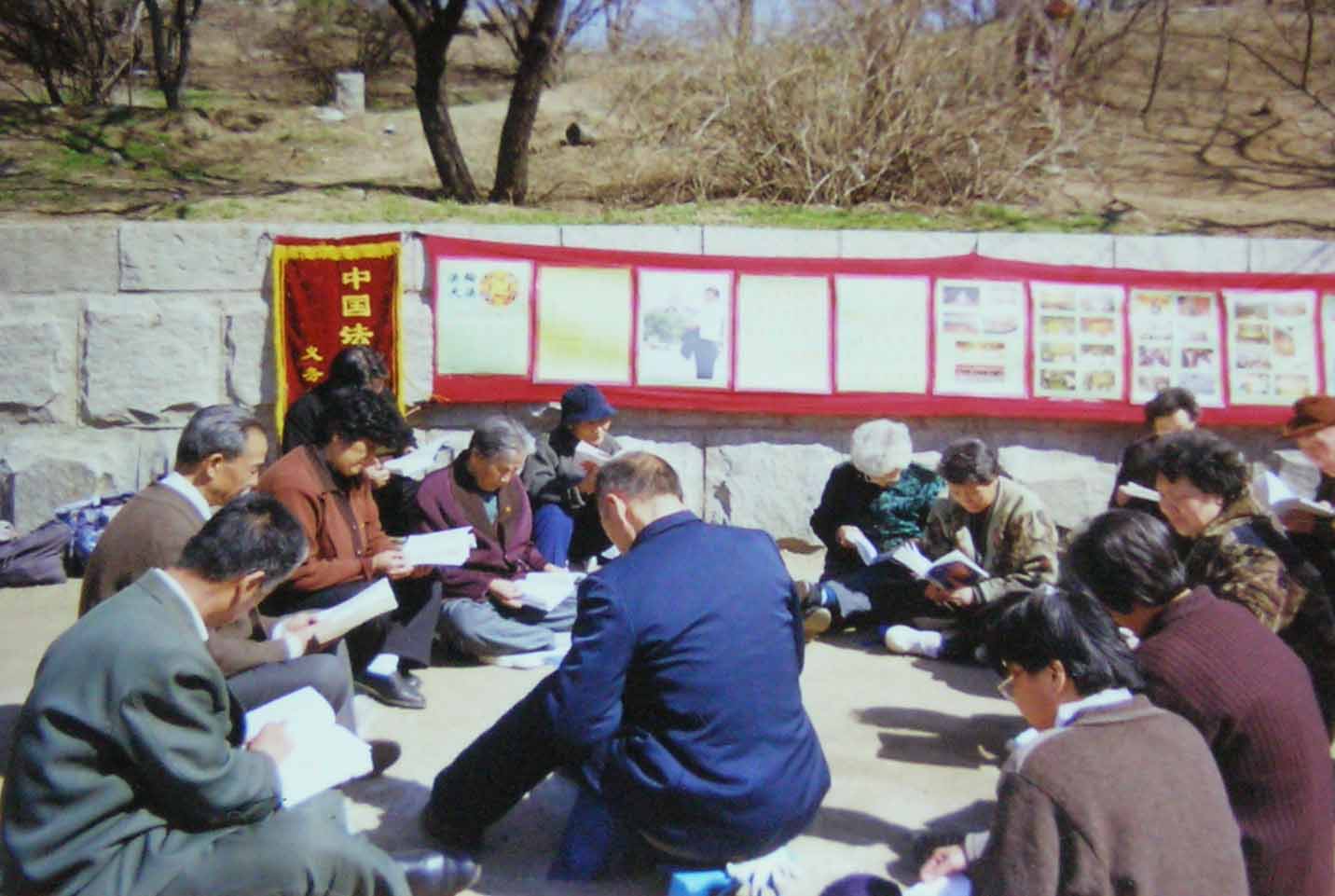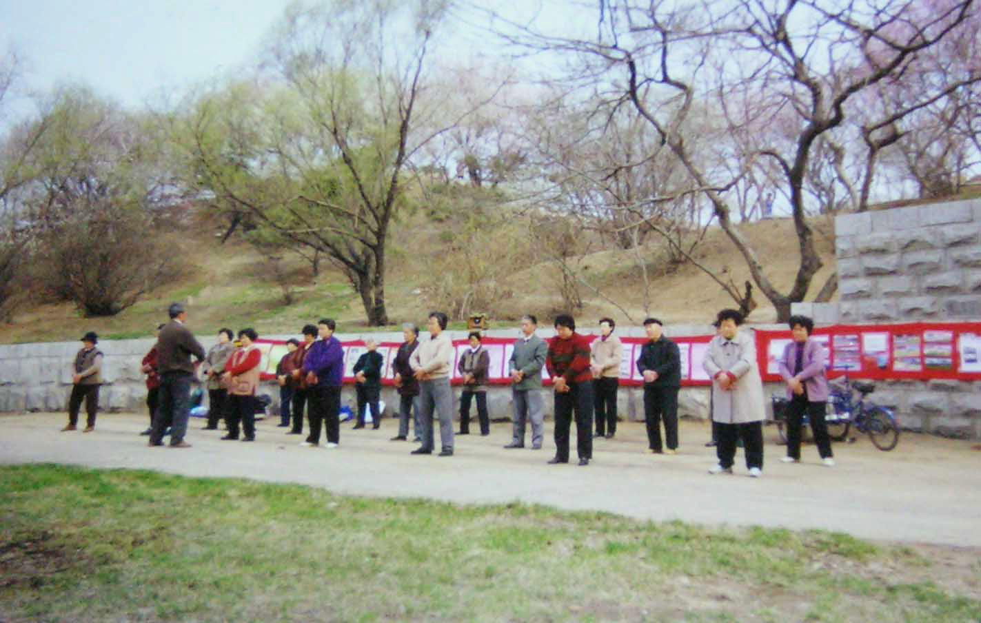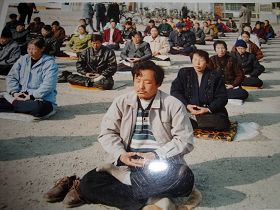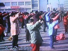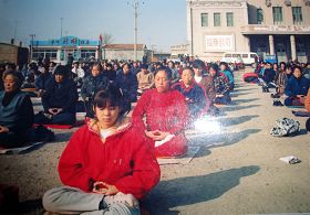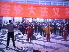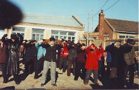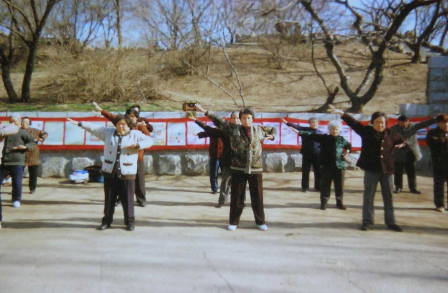 这个小炼功点是在一九九六年一月十九日开始的,大部份是退休人士,每个人以前都有多种疾病,通过炼法轮功各种疾病不翼而飞。这几张照片是一九九八年3-4月照的,法轮功学员每天上午8点开始炼功,然后一起读法轮功书籍。