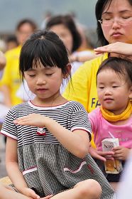 ![]() 千余名台湾中区法轮功学员五月八日集聚日月潭举行庆祝世界法轮大法日活动,图为学员炼第五套功法。 |