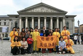 【明慧网二零一零年五月十日】(明慧记者德祥德国慕尼黑报道)五月十三日是世界法轮大法日暨法轮功创始人的华诞,为了庆祝这个日子,德国慕尼黑和一些巴伐利亚州的法轮功学员,于二零一零年五月八日聚集在巴伐利亚州府慕尼黑王宫和国家歌剧院前的马克斯-约瑟夫广场(Max-Joseph-Platz),举办了庆祝活动,通过炼功和图片展等方式,向德国民众展示了大法的美好。