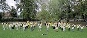 ![]() 法轮功学员们在著名的旅游景点菲兹洛伊花园集体炼功 |