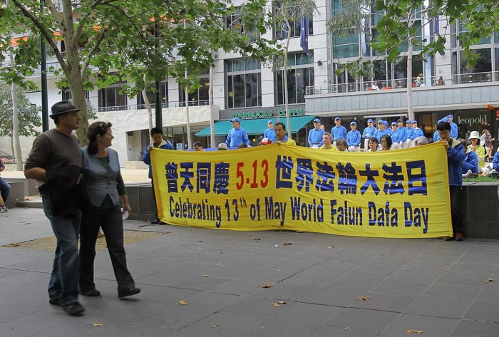 墨尔本法轮大法佛学会负责人范先生向本报介绍了他们庆祝“5.13”活动的意义。他说,在世界法轮大法日这天,全球法轮功学员在公共场所为师父庆贺生日,还进行功法表演等,近年天国乐团加入,演奏“法轮大法好”、“法正乾坤”等曲目,来展现法轮大法的美好。一些法轮功学员向路人讲述法轮功反迫害的真相,并发放光盘、报纸、《九评》等真相资料。