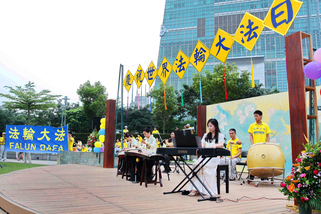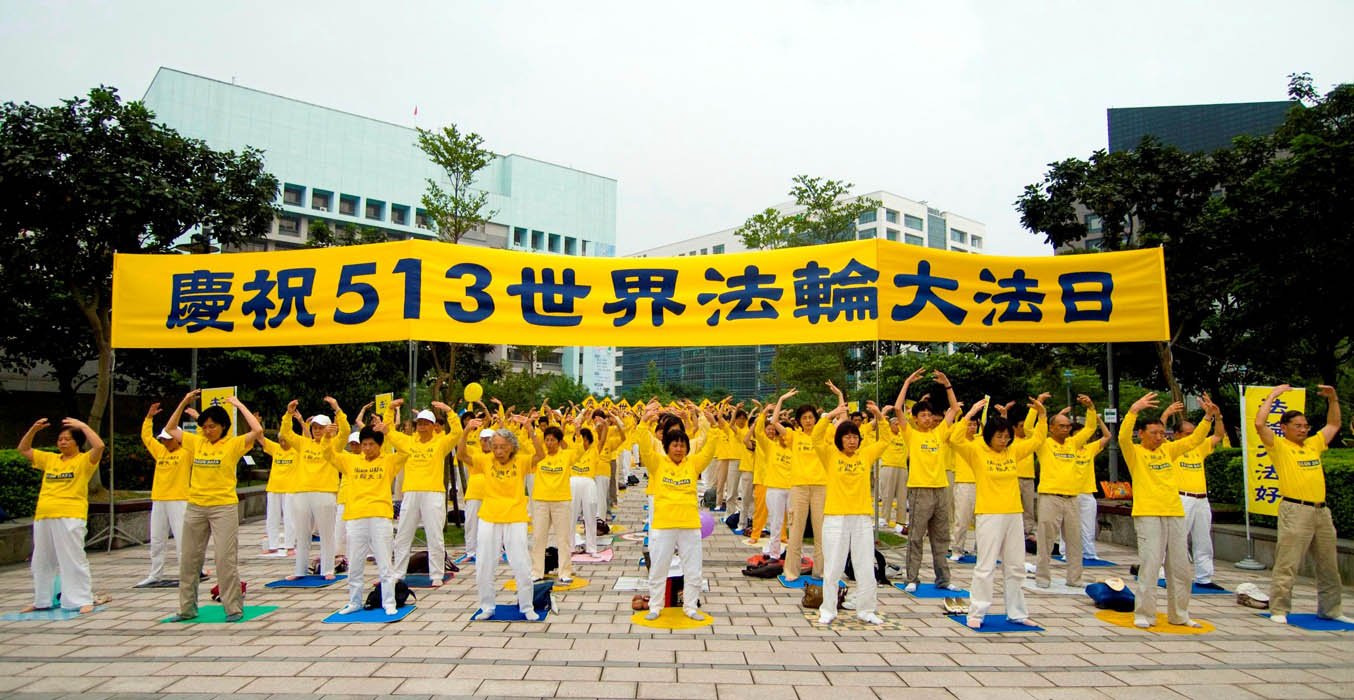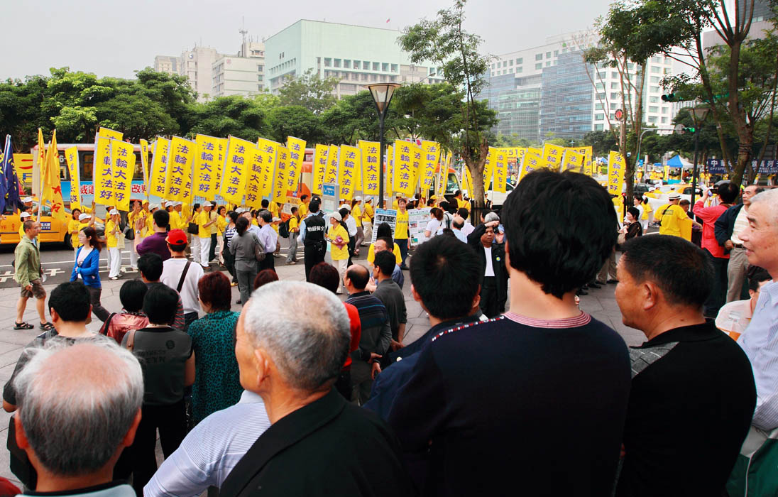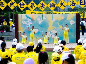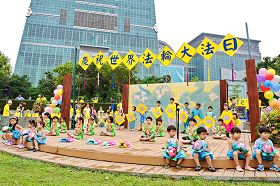 ![]() 一千多名法轮功学员,二零一零年五月九日下午齐聚在台北一零一大楼对面的信义广场,举办庆祝五一三世界法轮大法日活动 |