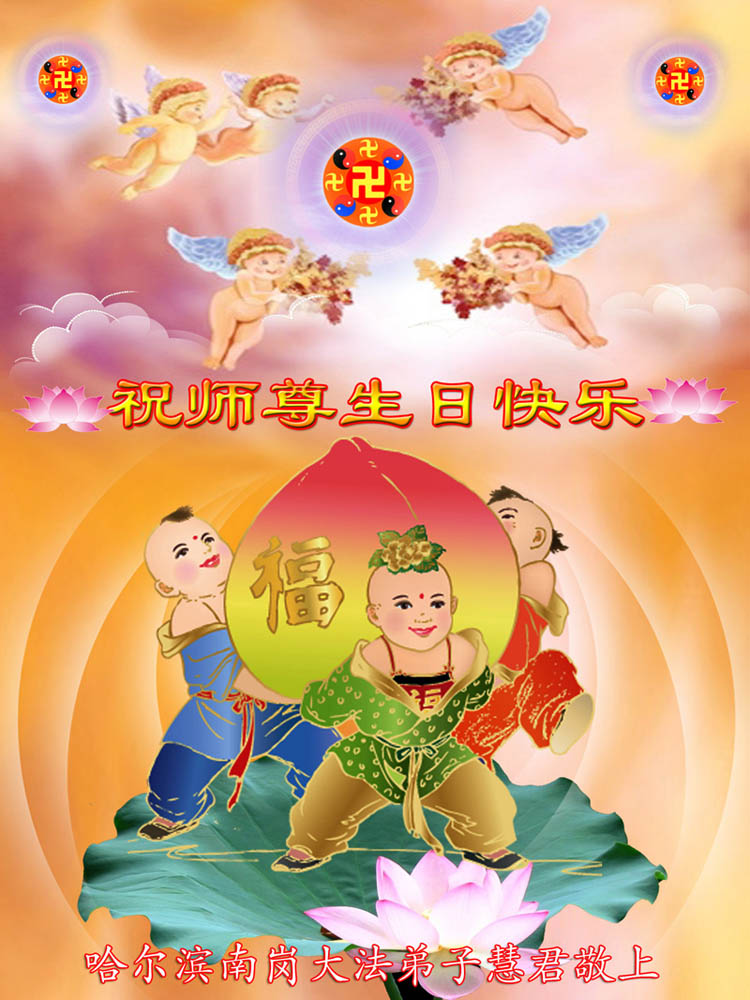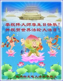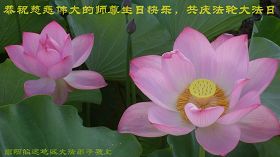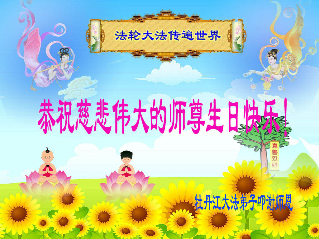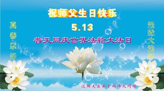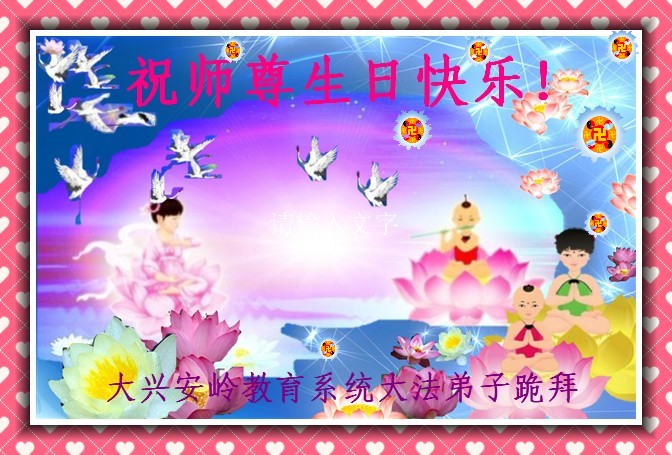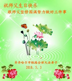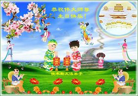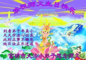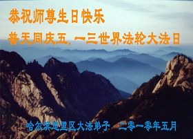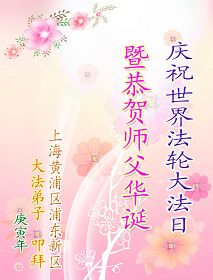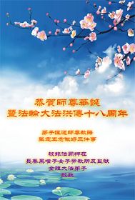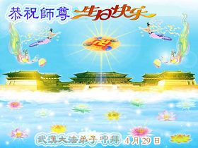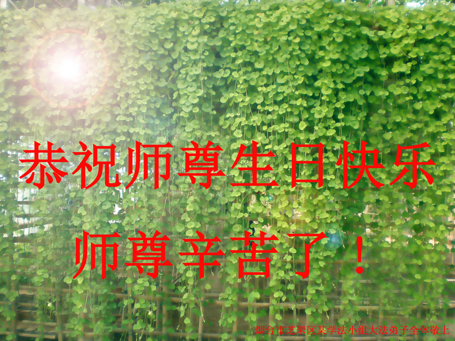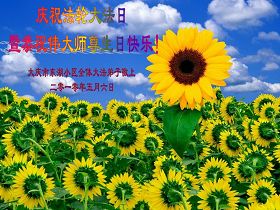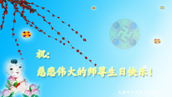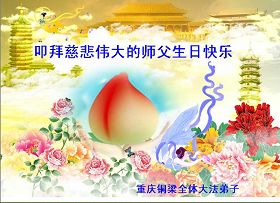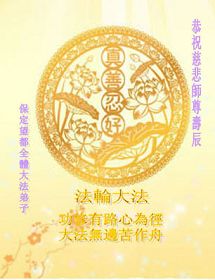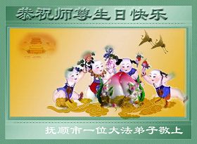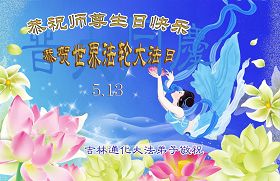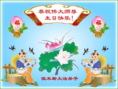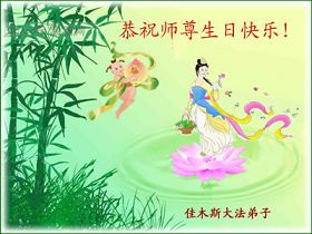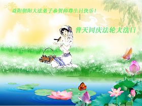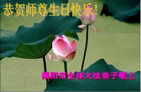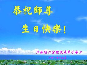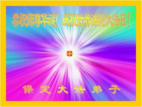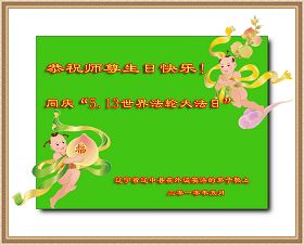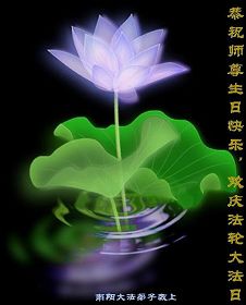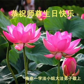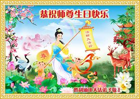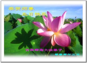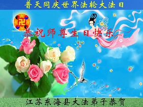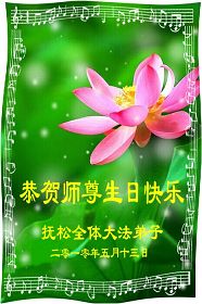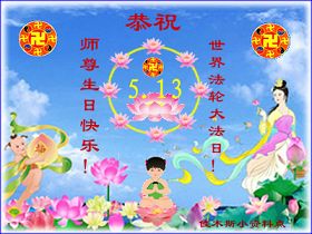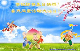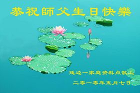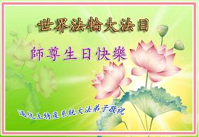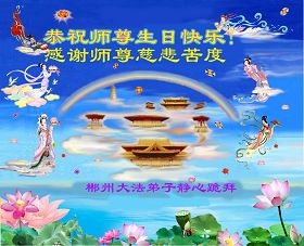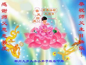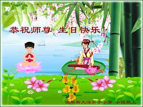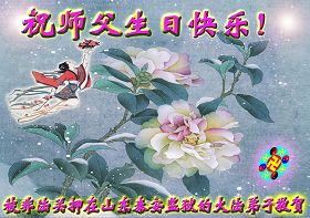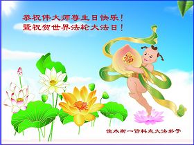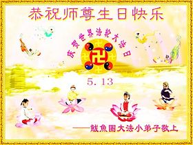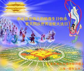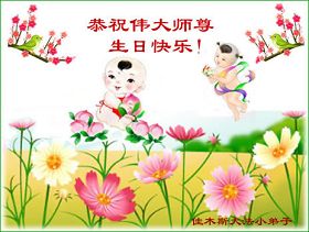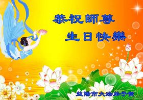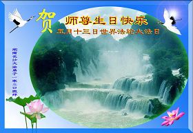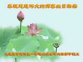 修炼法轮大法以来,师尊不仅给了我们健康的身体,还让我们懂得了人活着的真正目地和当前讲真相救人的重要性。师尊的恩泽一直沐浴着我们。在师尊生日之际,我们叩拜师尊:恭祝师尊生日快乐!请师尊放心,我们一定做好三件事完成史前誓愿,圆满随师还。