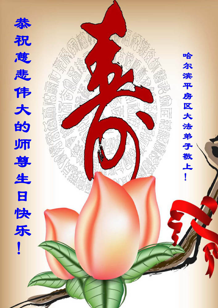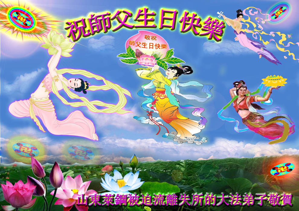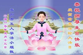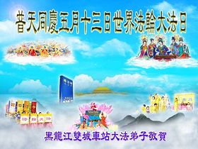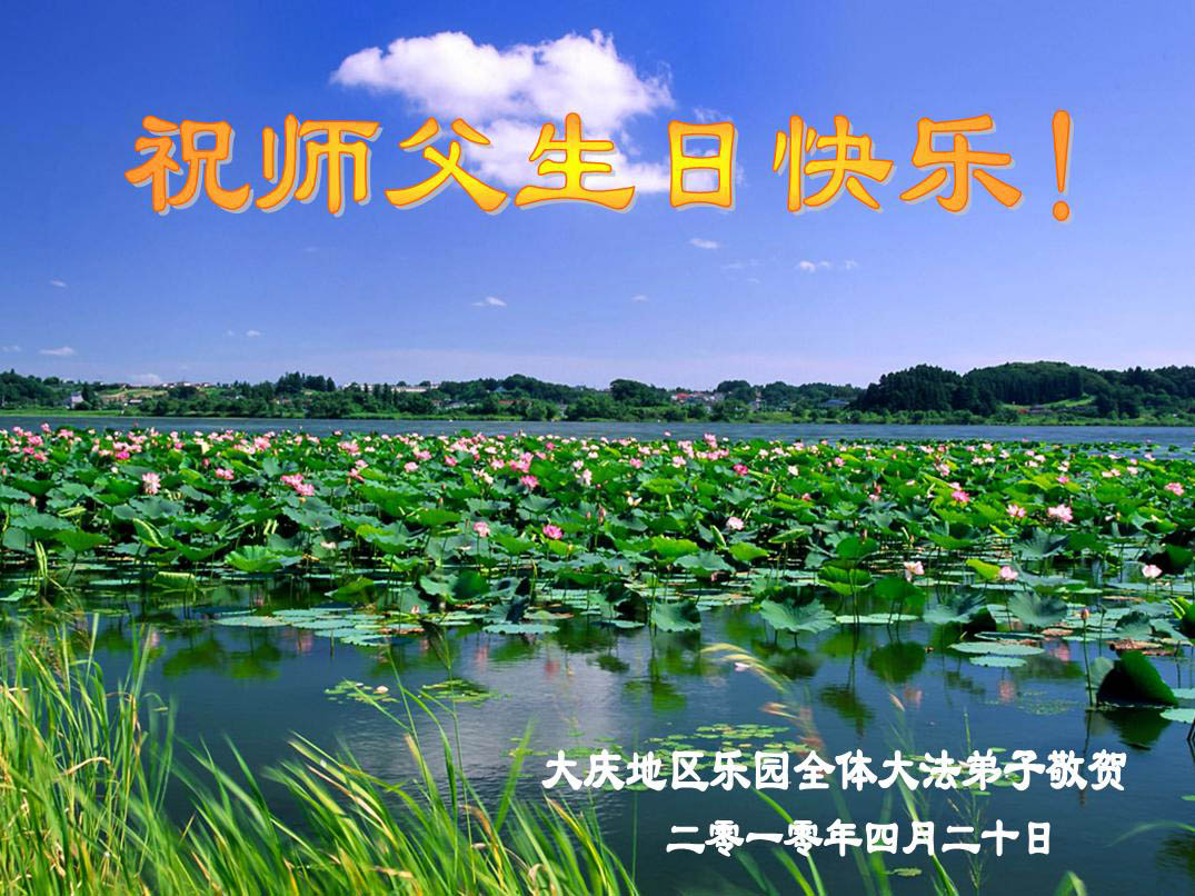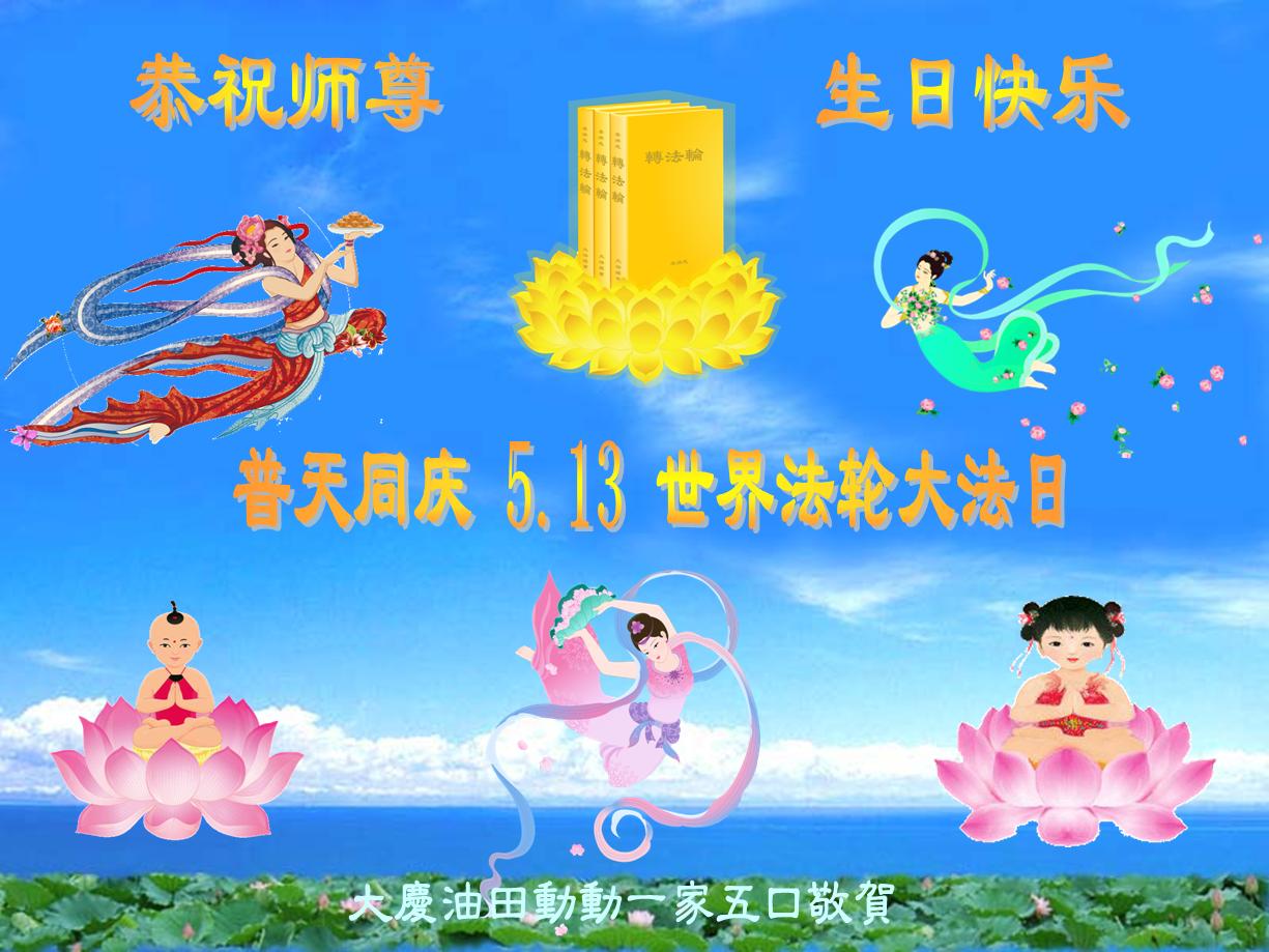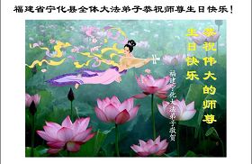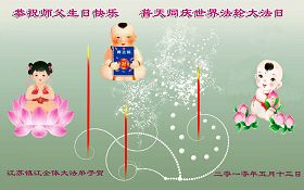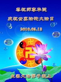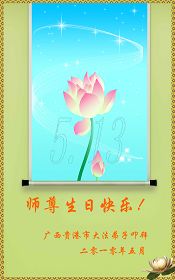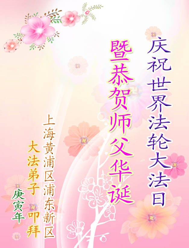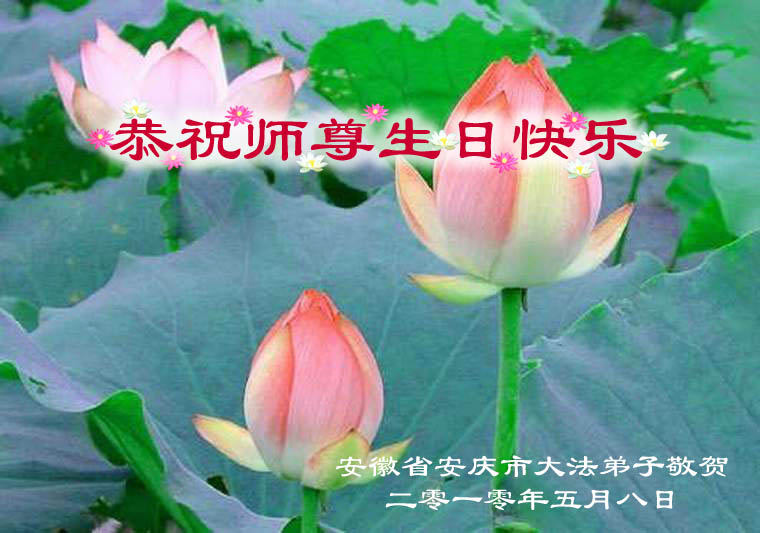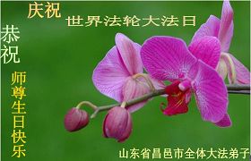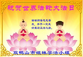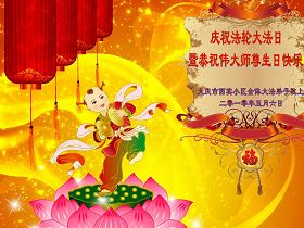 修炼法轮大法以来,师尊不仅给了我们健康的身体,还让我们懂得了人活着的真正目地和当前讲真相救人的重要性。师尊的恩泽一直沐浴着我们。在师尊生日之际,我们叩拜师尊:恭祝师尊生日快乐!请师尊放心,我们一定做好三件事完成史前誓愿,圆满随师还。