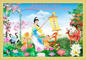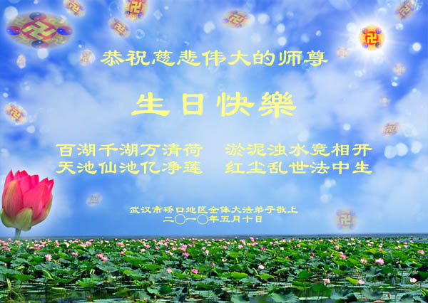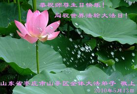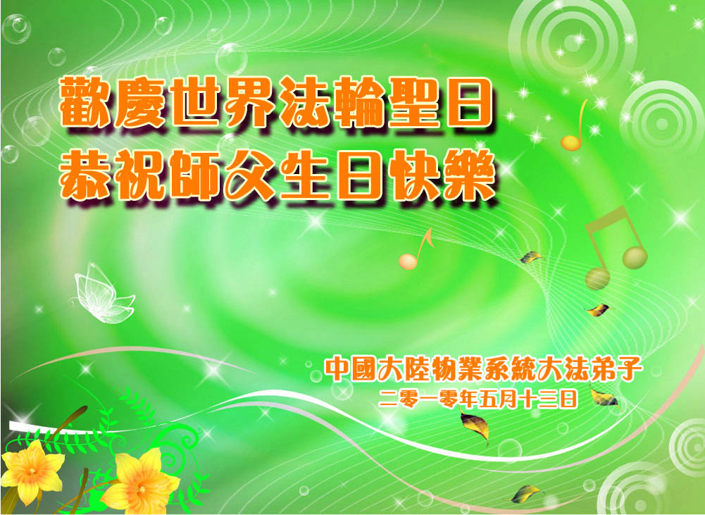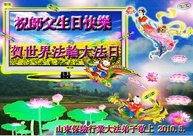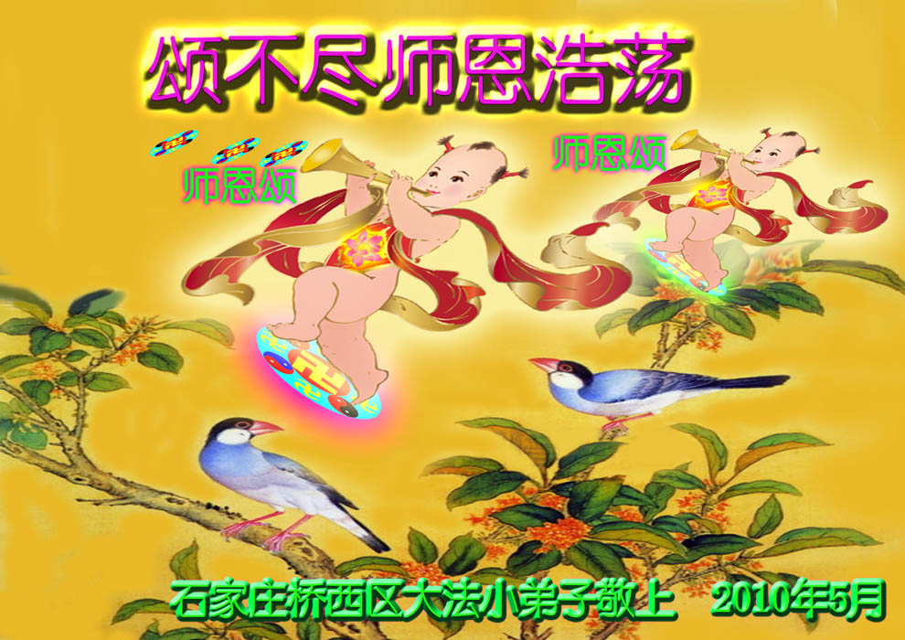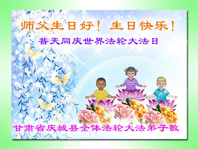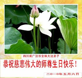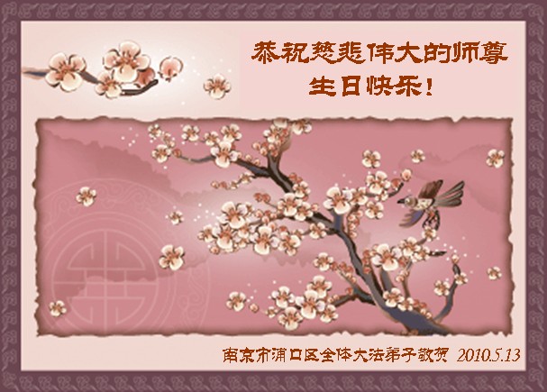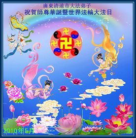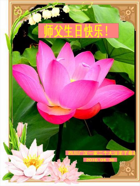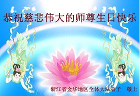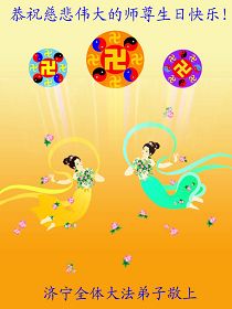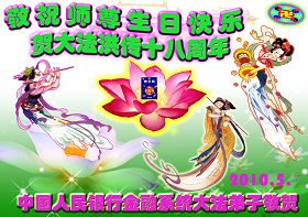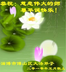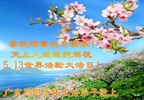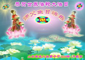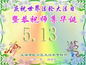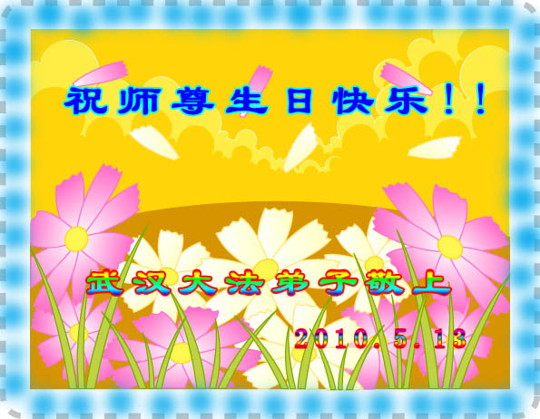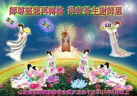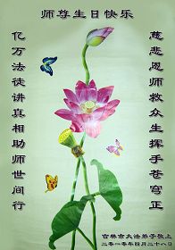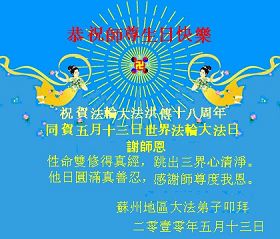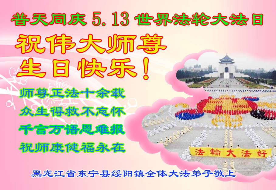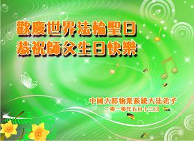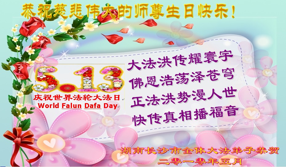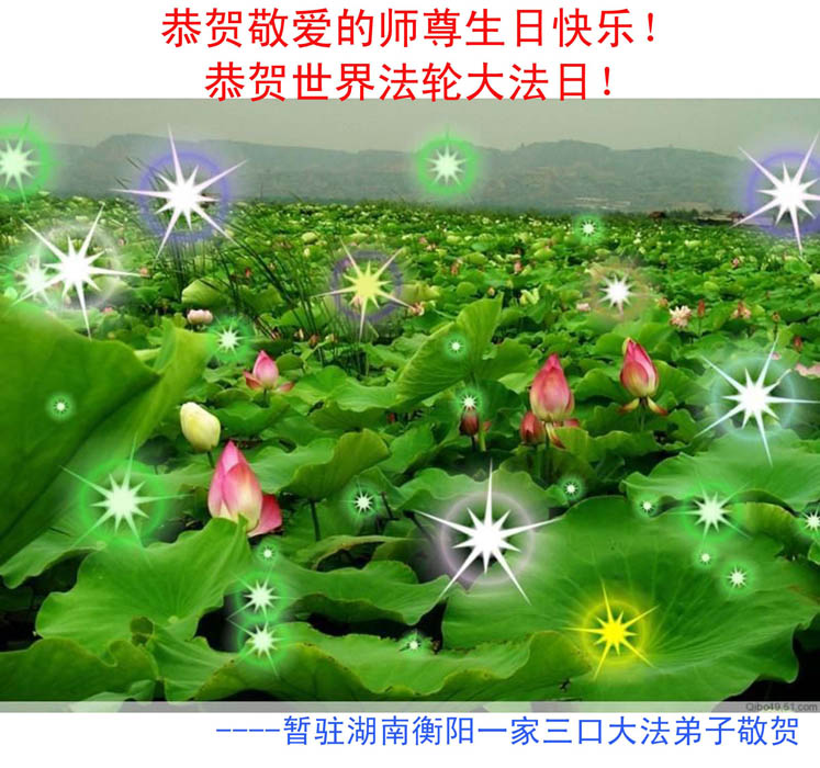修炼法轮大法以来,师尊不仅给了我们健康的身体,还让我们懂得了人活着的真正目地和当前讲真相救人的重要性。师尊的恩泽一直沐浴着我们。在师尊生日之际,我们叩拜师尊:恭祝师尊生日快乐!请师尊放心,我们一定做好三件事完成史前誓愿,圆满随师还。