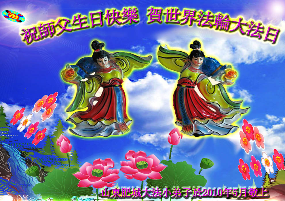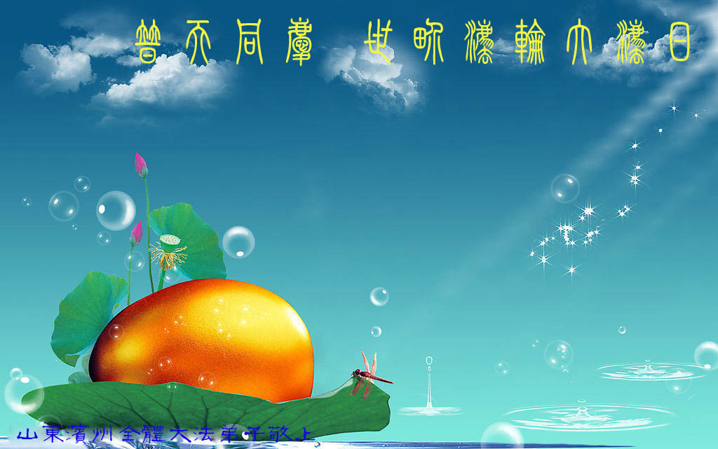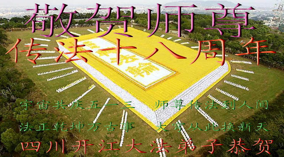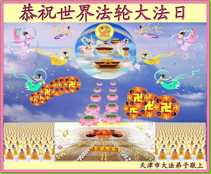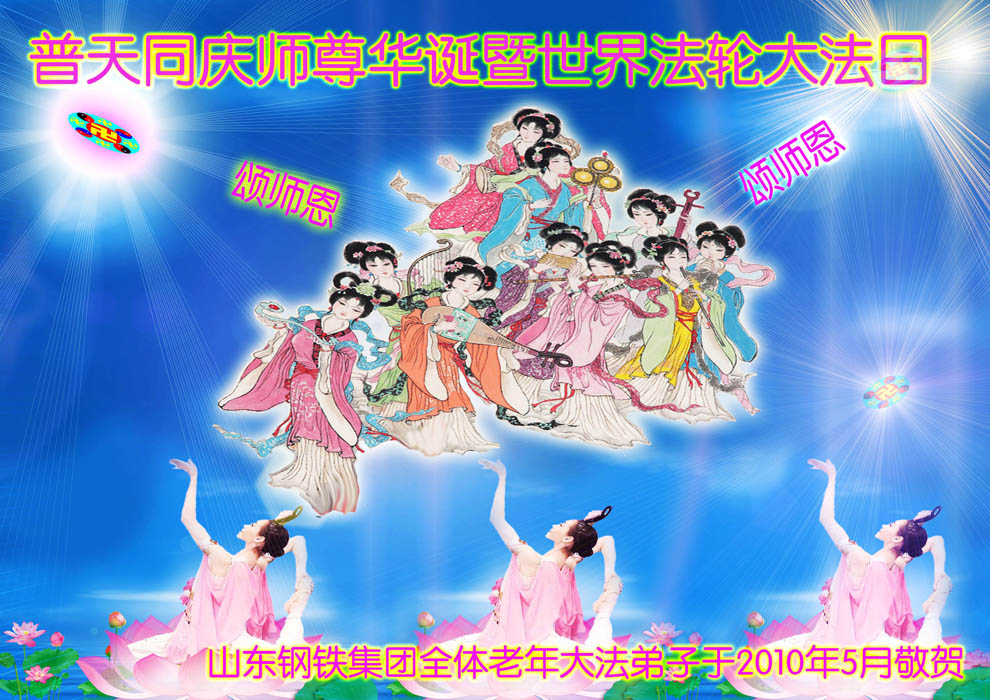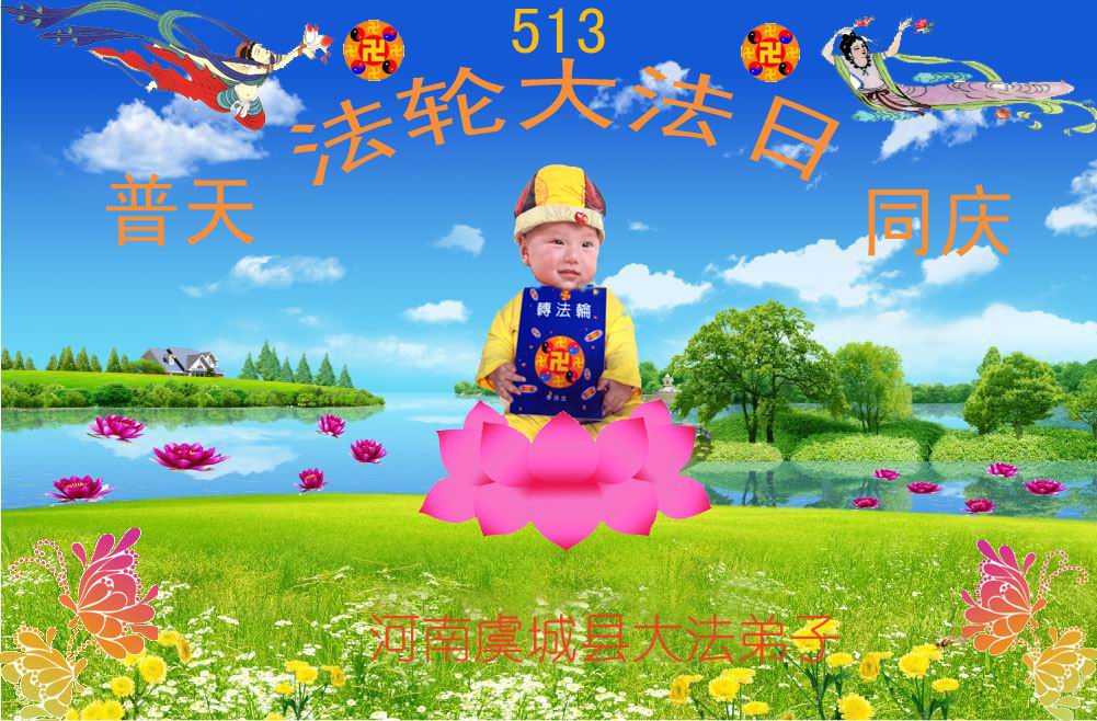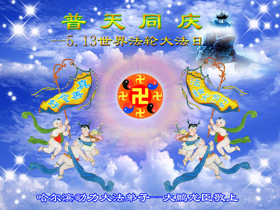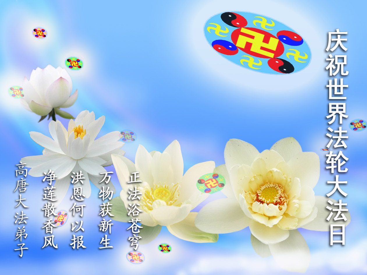 普天同贺!法轮大法好!让法轮大法好的呼声永远在苍宇中回荡!