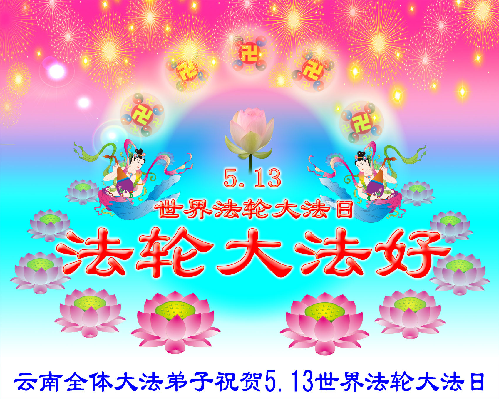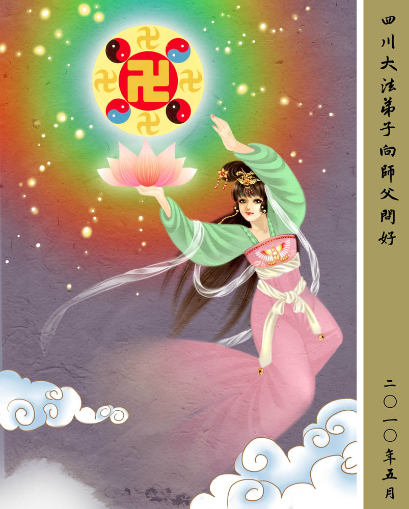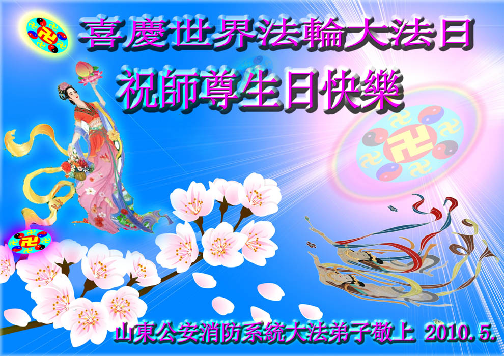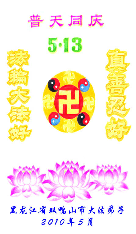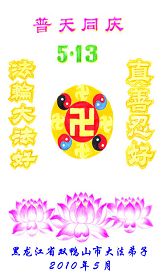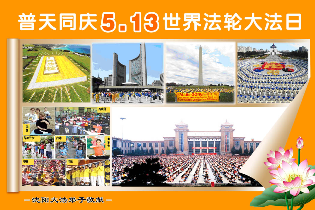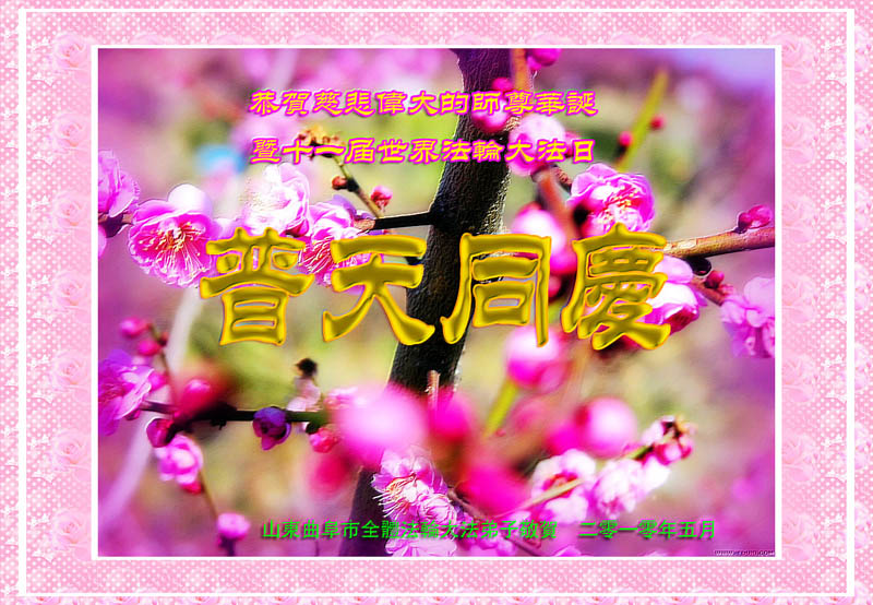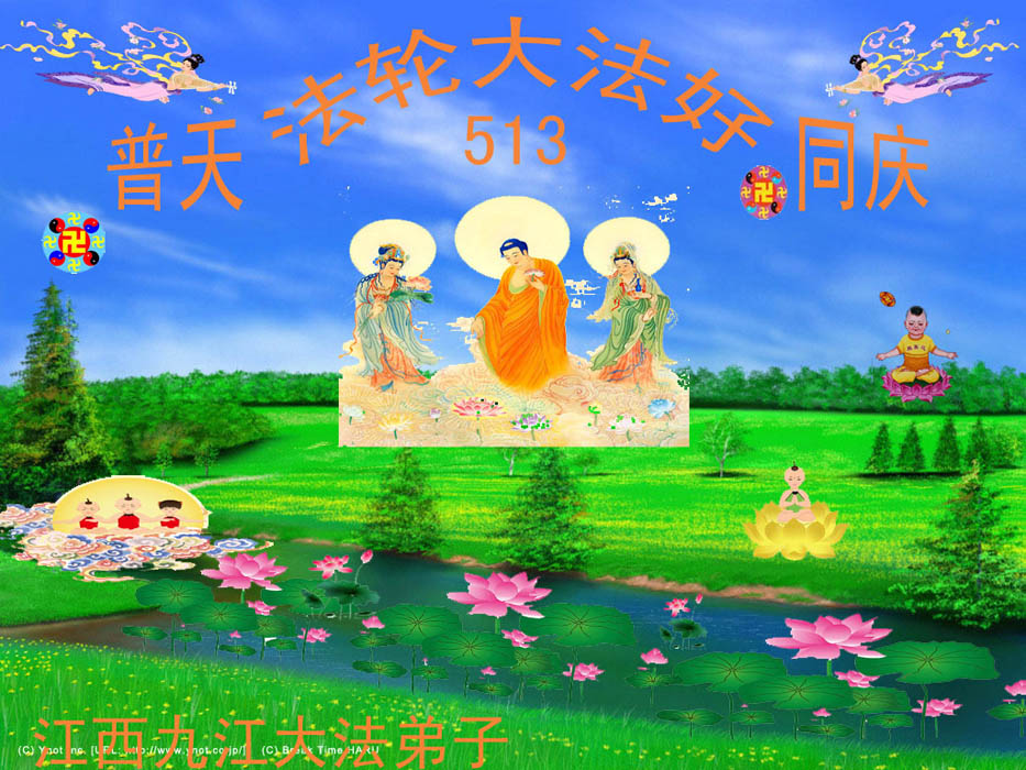普天同贺!法轮大法好!让法轮大法好的呼声永远在苍宇中回荡!