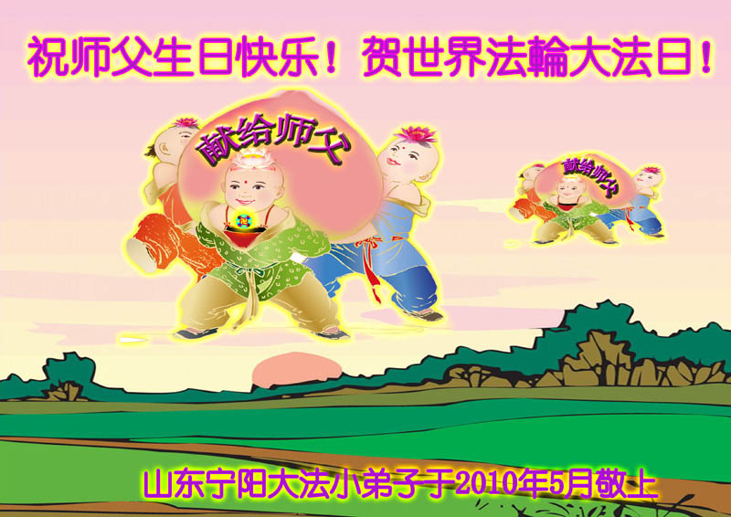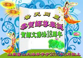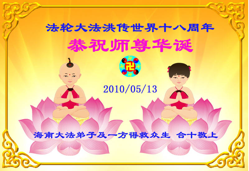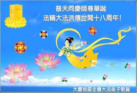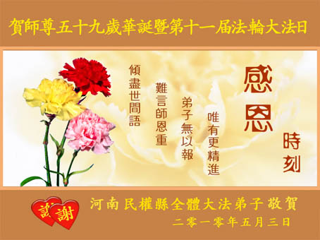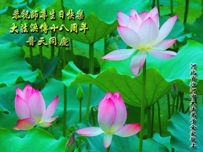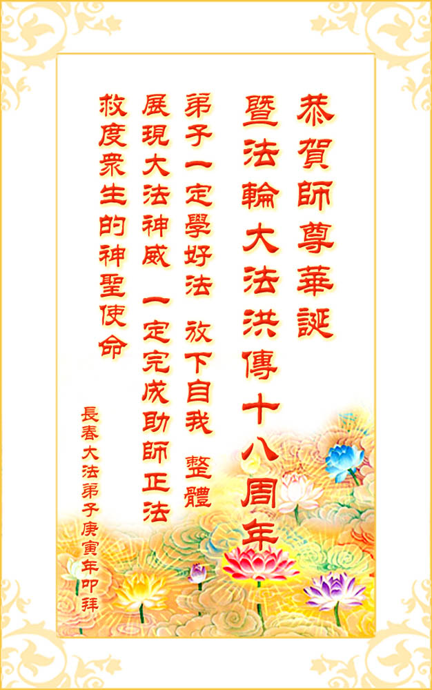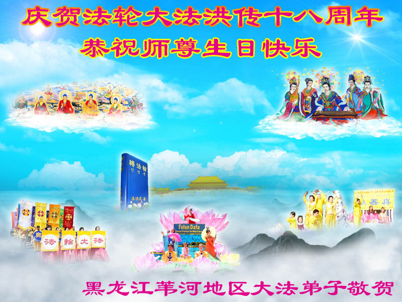 即将迎来师尊的五十九岁华诞和第十一届法轮大法日以及法轮大法洪传十八周年之际,秦皇岛市三区四县全体大法弟子衷心祝愿师尊生日快乐!同时更加精進修好自己,救度更多的众生,努力完成好自己的来世大愿。让师父少一些操劳,多一份安慰。