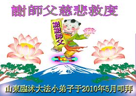 在这里我们全体新老大法弟子给师父拜寿了!谢谢师父的救度之恩给师父九叩首!