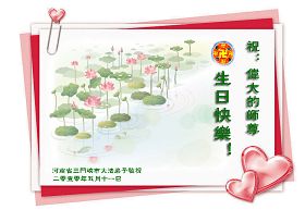 澳大利亚墨尔本全体大法弟子恭贺伟大慈悲的师尊生日快乐!并热烈庆祝师尊传法十八周年暨世界法轮大法日!越南大法弟子恭祝慈悲伟大的师尊生日快乐!台湾大法弟子恭贺师尊生日快乐!印度尼西亚大法弟子恭祝师尊生日快乐!阿拉伯联合酋长国大法弟子祝贺师尊生日快乐!师尊生日快乐!您辛苦了,愿师尊多几份欣慰,少一份操劳。