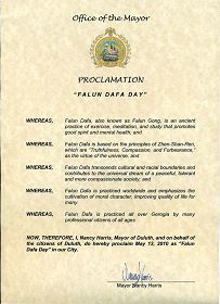 乔治亚州杜鲁斯市长褒奖“法轮大法日”