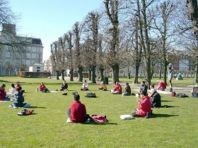 这天正值国王花园樱花盛开的时节,来这里赏花的人们络绎不绝,不少瑞典人被法轮功的炼功音乐和舒缓的动作所吸引,加入到学习功法的队伍中。