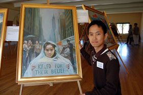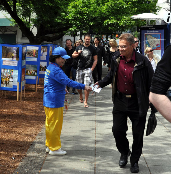 ![]() 人们在展板前了解法轮功及其在中国受迫害的真相 |