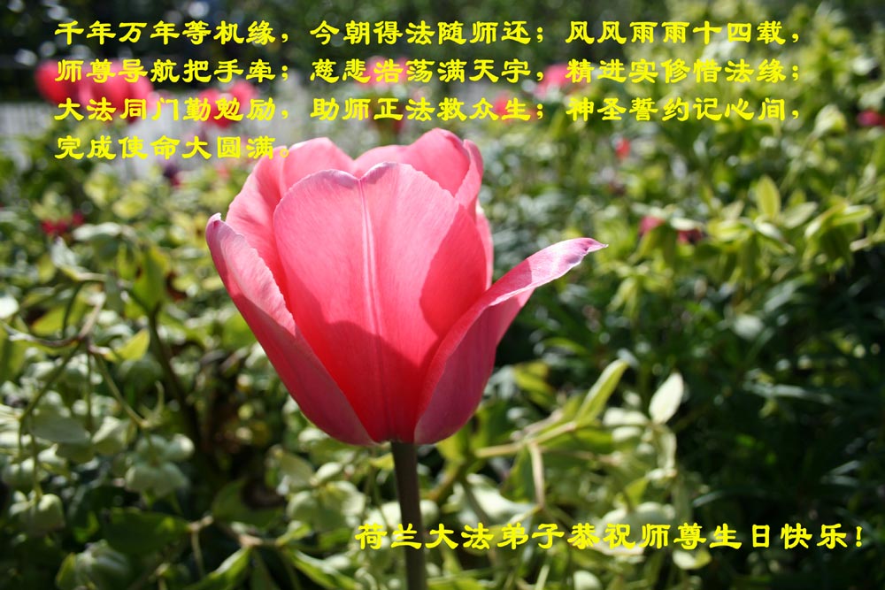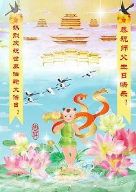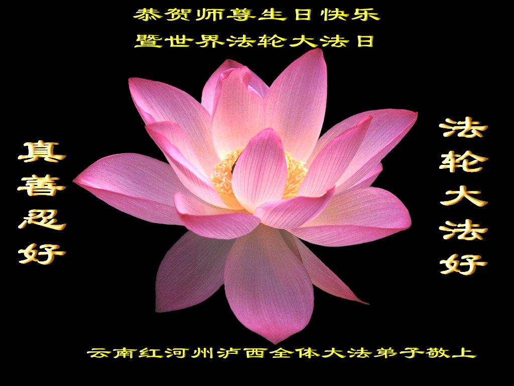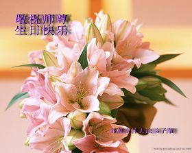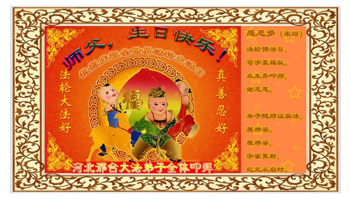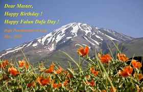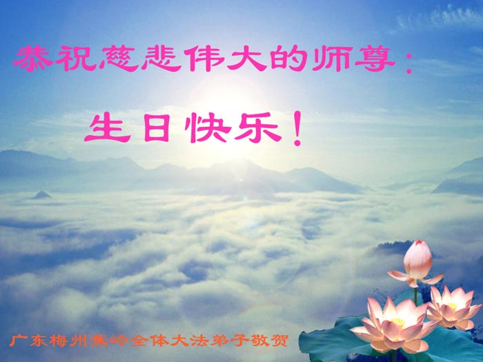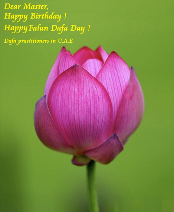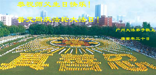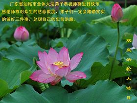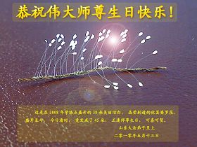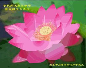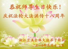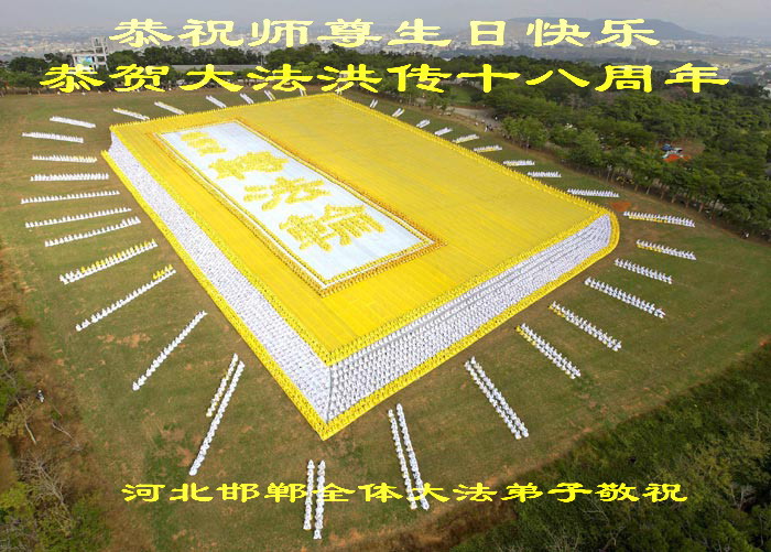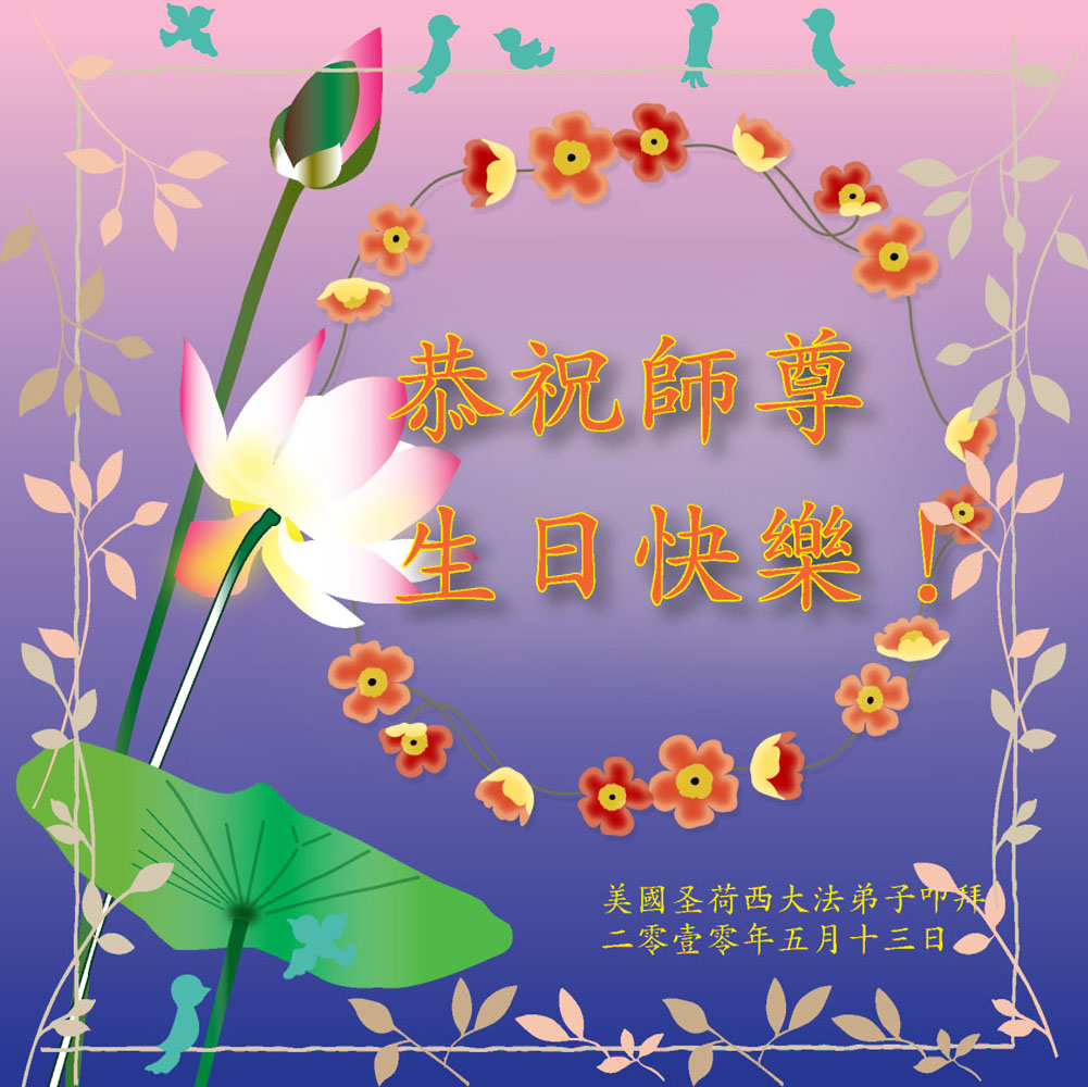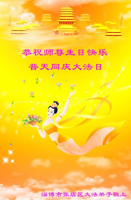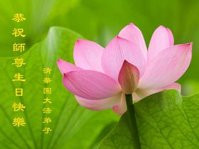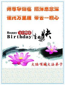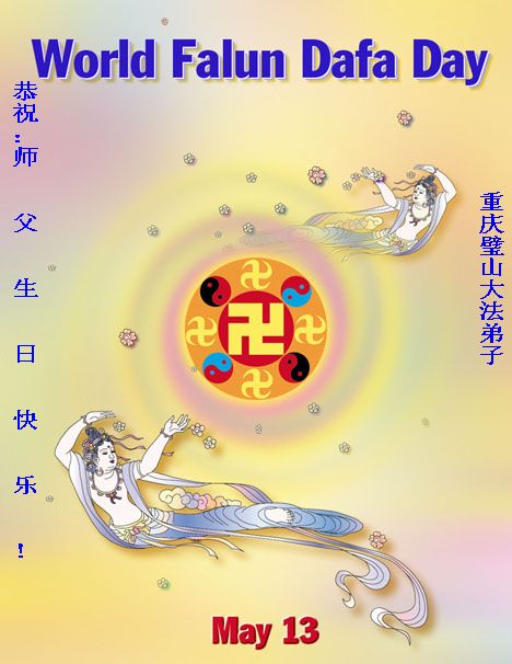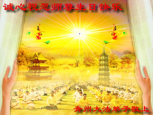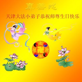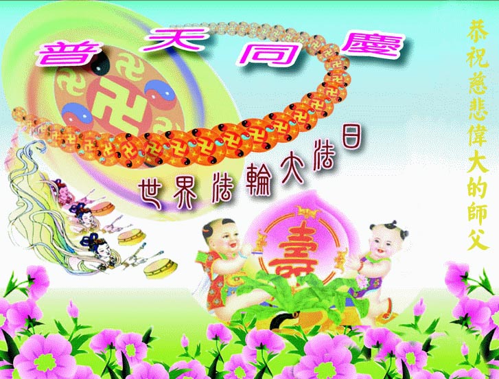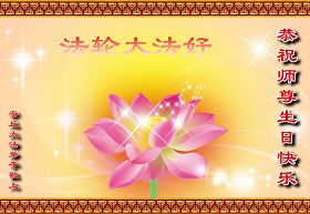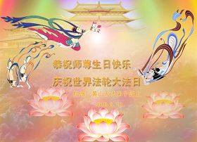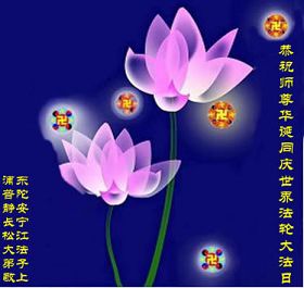 他说:“在这喜庆的日子,我希望祝贺法轮功,法轮功提醒我们每个人这些美丽高尚的原则。”