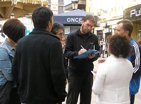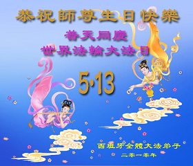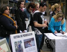 【明慧网二零一零年五月十四日】二零一零年五月十三日是法轮大法弘传十八周年暨第十一届世界法轮大法日,也是李洪志师父五十九华诞。一九九二年师尊将法轮大法传向世间,至今法轮大法已传遍世界各地。在世界法轮大法日即将到来之际,西班牙各地大法弟子以炼功、教授功法、交流心得体会以及讲真相、征签等多种方式举办庆祝纪念活动,向世人展示法轮大法的美好的同时征集反迫害签名。