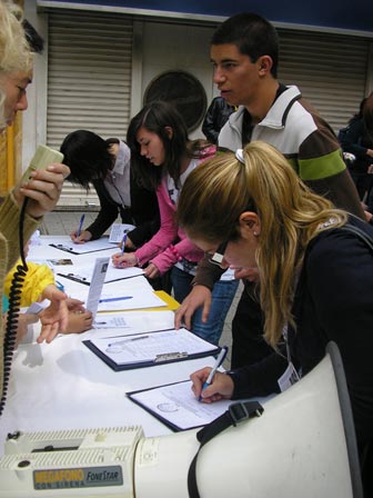 ![]() 一群路过这里的青年学生得知真相后签字声援法轮功 |