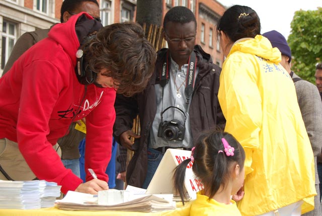 一位先生在声援反迫害表格上签字后说:“这个迫害就如同当年基督徒被迫害,这在现在是决不容许这种事发生的。”