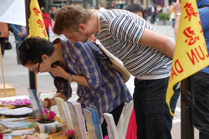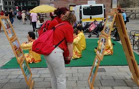 活动当日,天气晴朗,游人如织。法轮功学员祥和的功法表演,吸引了众多的观光客和当地民众。人们纷纷打听关于法轮功的情况和中共迫害法轮功的事实真相。很多游人要了他们本国法轮功炼功点的联系方式,表示想学法轮功。