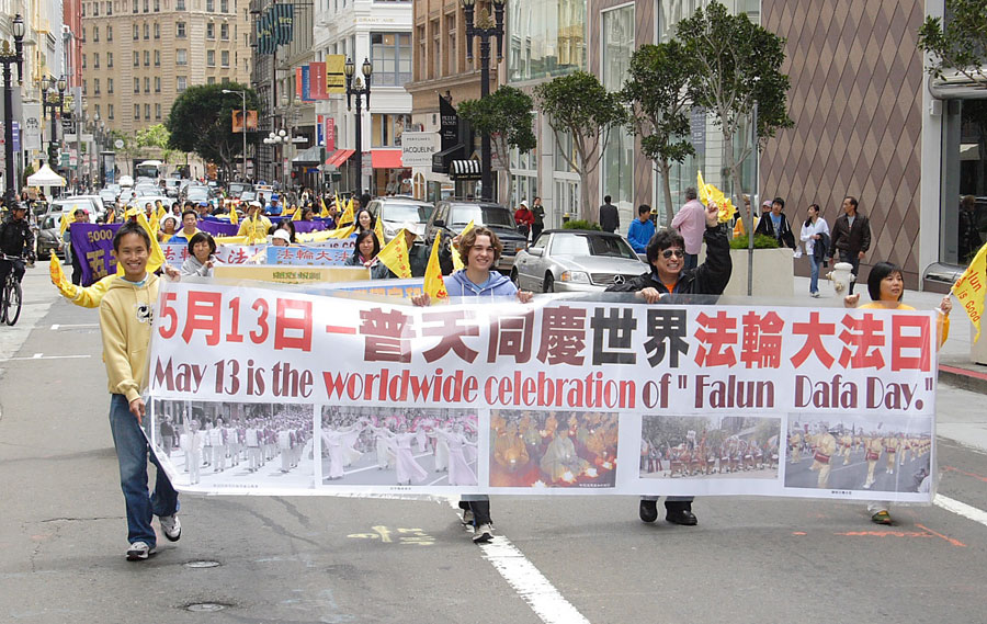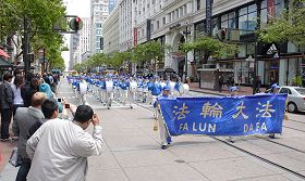 法轮功学员在旧金山市中心游行庆祝世界法轮大法日