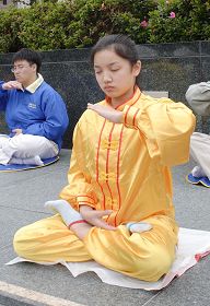 法轮功学员在联合广场炼功