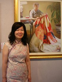 ![]() 画家张淑德最喜欢董锡强的《绣法轮》 |