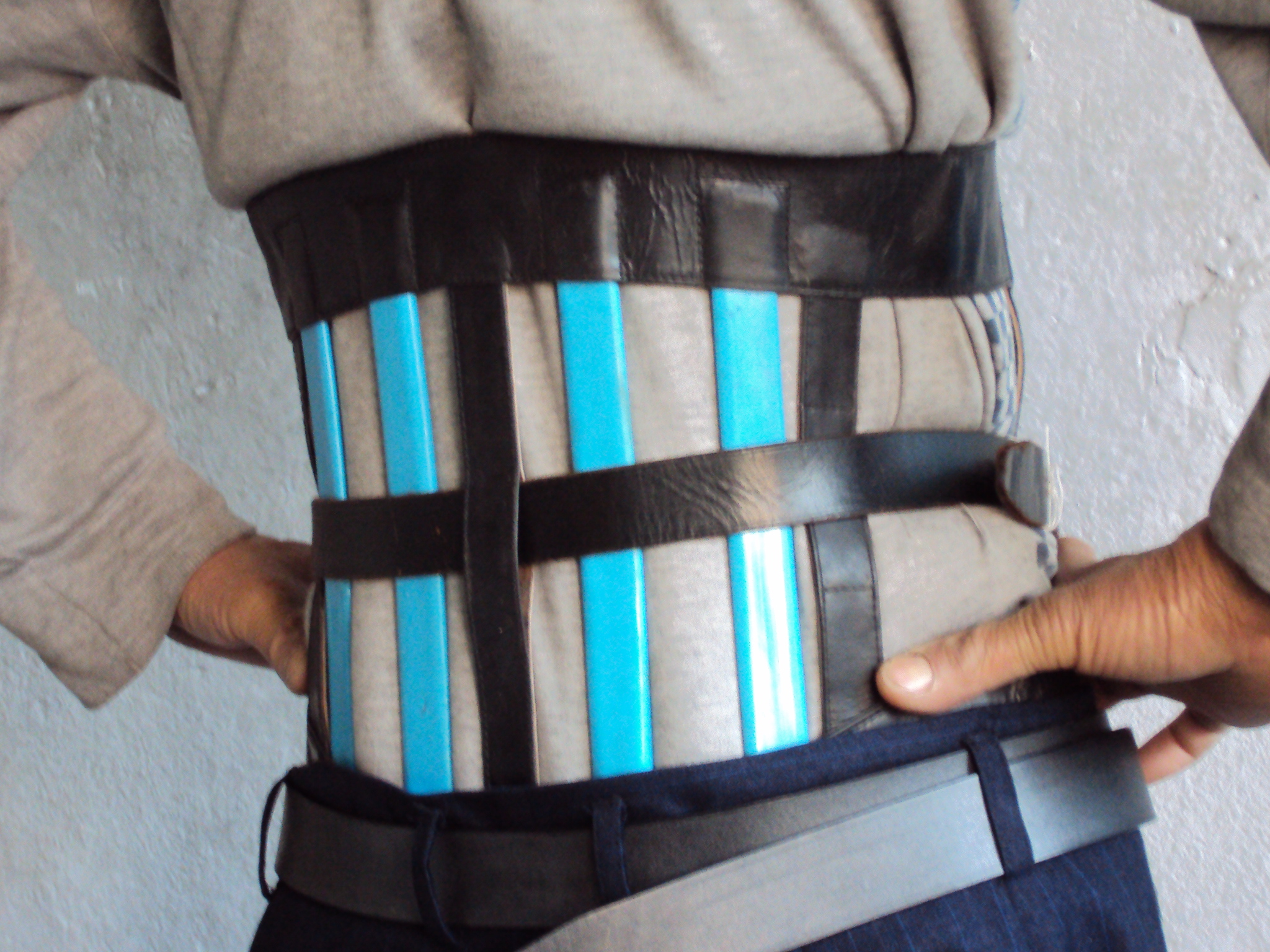 一九七五年春,我被流放到农村当知青;一九七九年春返城参加工作。一九八一年秋在单位受公伤,二三四腰椎压偏、五腰椎压两半、颈椎压缩性骨折。两手常年麻木,因怕坏死两手经常拿两个空心铁球,合起来一斤多,用于活动手掌。因腰部受伤睡觉不能翻身,一年四季睡觉总是平躺着。一年后医生让扎钢背心,前边是整块牛皮,后边是五公分宽的牛皮条子固定四条钢条,也叫钢围腰,不分昼夜扎在腰上。每两年多因牛皮被汗水浸后腐烂就需要换一个,每换一个,因为边角硬,上边卡肋骨、下边卡胯骨,都得遭一个多月罪,一共换了六、七个,腰部的皮肤都被捂破好几次,脱掉好几层,夏天加上汗水真是煞得难受。