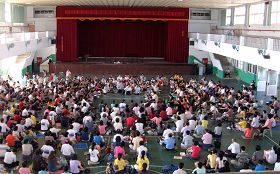 台湾中区部份法轮功学员在云林县斗六市镇东国小的大礼堂学法交流