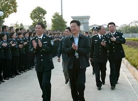 湖北省“610”头目杨松(中)视察湖北省女子劳教所