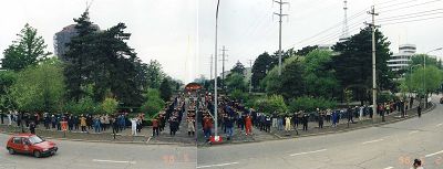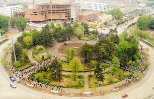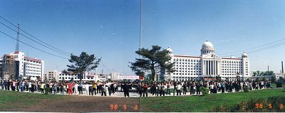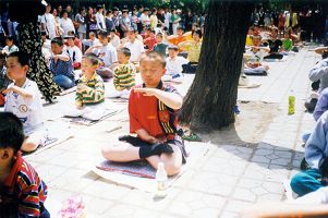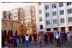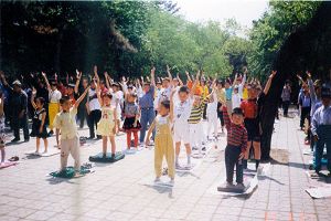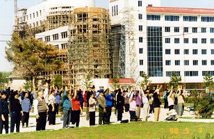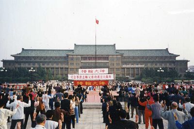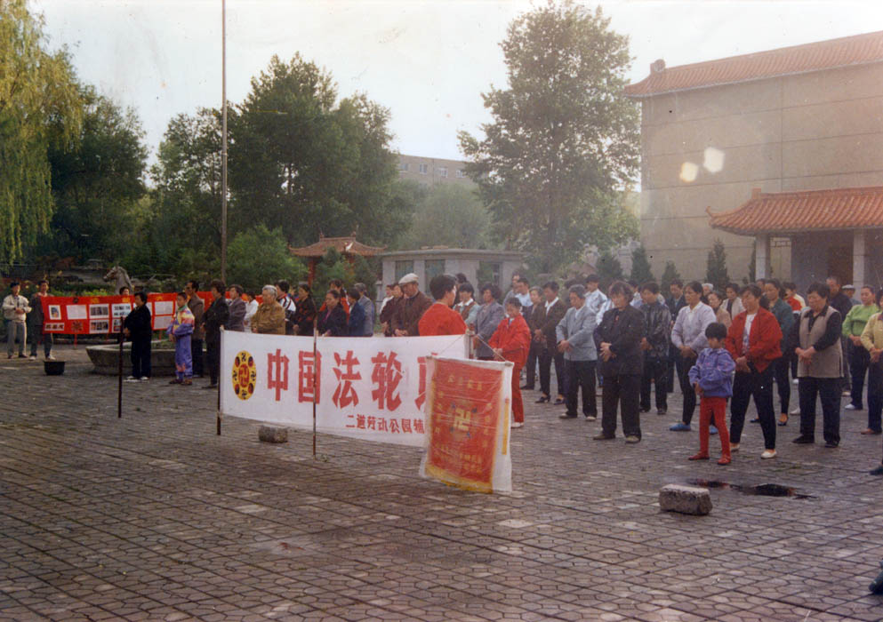 长春是师父的家乡,是李洪志师父最早传播法轮功的地方。从一九九二年到一九九四年,师父在长春办过七期法轮功学习班,几千人亲耳聆听过师父的讲法,几十万人相继走入大法修炼。九九年“七•二零”之前,每天清晨,象这样的集体炼功场面遍布长春市的各大公园、广场、操场、空地。人们利用晨练时间,自发来到炼功点,人数或多或少,随着悠扬的炼功音乐,静静的炼习五套功法,场面祥和平静。炼功结束后,大家又静静地离开,准备上班。那是一段多么令人难以忘怀的美好时光啊。