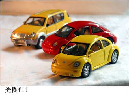 第二张正好相反,用的是小光圈(小瞳孔,大F值),距焦在第一辆车,因为景深比较大,背后的车辆也比较清楚。