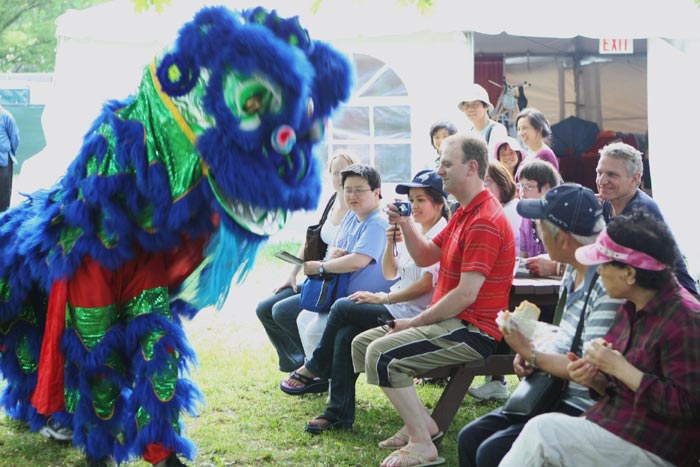 ![]() 多伦多莲花艺术团表演的舞狮受到人们欢迎 |