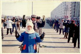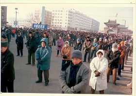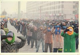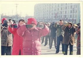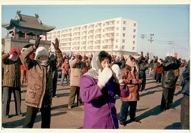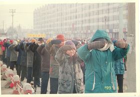历史照片:九九年一月一日在承旭广场集体炼功 |  历史照片:九九年一月一日在承旭广场集体炼功 |