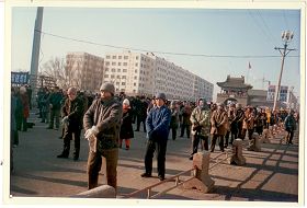 历史照片:九九年二月二十日在承旭广场集体炼功 |  历史照片:东门炼功点 |