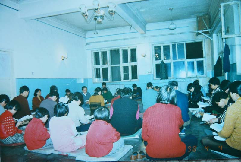 历史照片:集体炼功 |  历史照片:集体读大法书籍 |