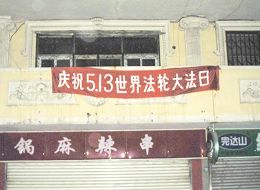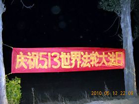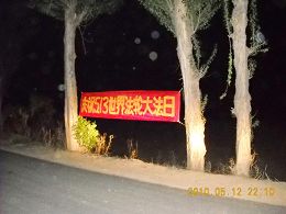 【明慧网二零一零年五月二十六日】每年的5月13日是世界法轮大法日,大陆各地法轮功学员以各种方式庆祝法轮功弘传18周年,向人们讲述法轮功的美好。河北某市在“世界法轮大法日”期间出现的大量真相横幅、条幅、标语等,这里是其中的一些照片。